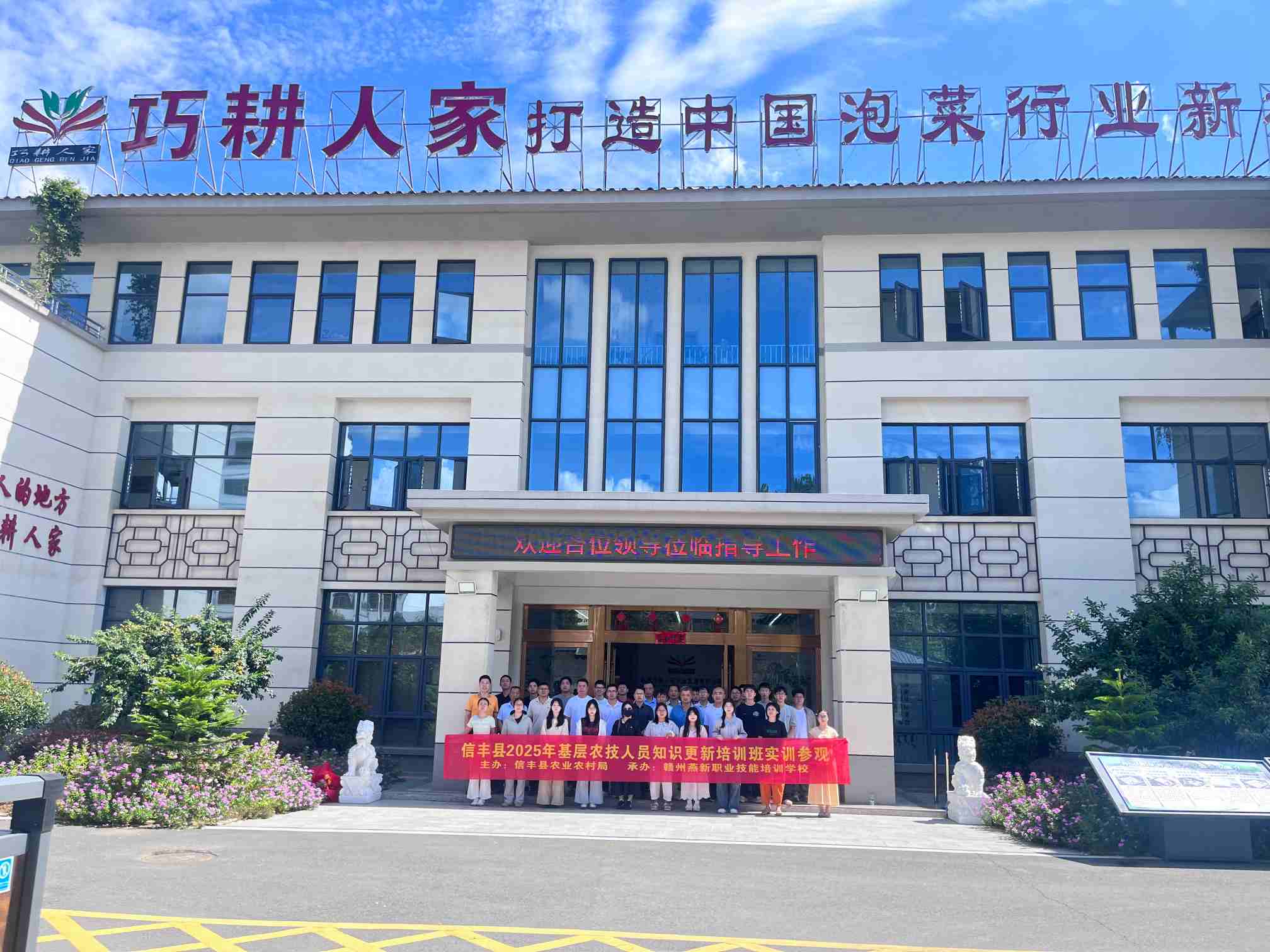 現(xiàn)場教學環(huán)節(jié)更是讓學員們直呼 “收獲頗豐”。在學校的精心安排下,學員們先后走進多家知名農(nóng)業(yè)企業(yè)和示范基地,近距離學習先進技術(shù)和管理經(jīng)驗:在贛州巧耕人家農(nóng)業(yè)發(fā)展有限公司,大家深入蔬菜種植基地和加工廠,詳細了解農(nóng)產(chǎn)品加工與銷售流程,重點學習了乳酸菌發(fā)酵菜腌制工藝技術(shù),掌握了提升蔬菜附加值的實用方法;在尋烏縣羊角園果蔬有限公司,學員們實地考察特色農(nóng)業(yè)種植模式,學習了特色果蔬品種選育、高效栽培等先進技術(shù);在江西果然食品有限公司和安遠縣橙皇現(xiàn)代農(nóng)業(yè)發(fā)展有限公司,大家聚焦農(nóng)產(chǎn)品加工技術(shù)與品牌營銷,探索了從 “田間” 到 “餐桌” 的產(chǎn)業(yè)鏈打造路徑;在中國贛南臍橙產(chǎn)業(yè)園(安西)及柑橘農(nóng)業(yè)科技示范基地,學員們沿著贛南臍橙的發(fā)展歷程,學習了臍橙標準化種植、病蟲害綠色防控等先進技術(shù),深刻感受到特色產(chǎn)業(yè)對鄉(xiāng)村振興的帶動作用;在中科微至&江西綠萌智能裝備(華南)制造中心項目現(xiàn)場,大家參觀了果蔬采后處理設(shè)備、設(shè)施農(nóng)業(yè)裝備生產(chǎn)基地,直觀了解了智能裝備在農(nóng)業(yè)生產(chǎn)中的應用,認識到科技賦能農(nóng)業(yè)的重要性;最后,在信豐金海農(nóng)業(yè)服務(wù)專業(yè)合作社糧油基地,學員們學習了糧油作物主導產(chǎn)業(yè)主推技術(shù),為今后開展糧油生產(chǎn)技術(shù)推廣工作奠定了堅實基礎(chǔ)。